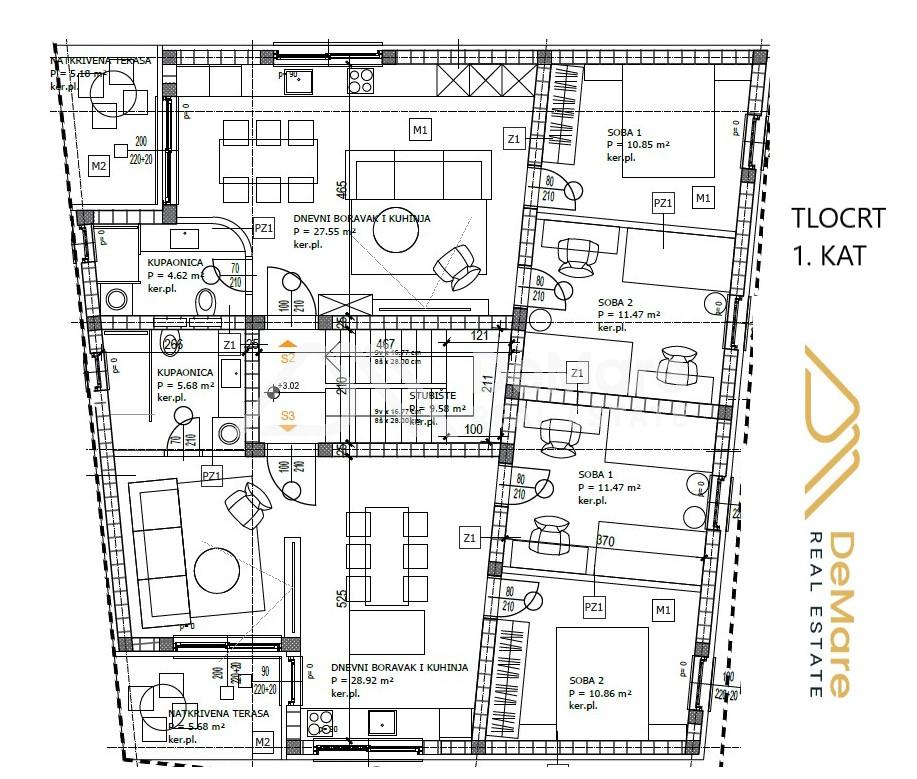 1. KAT - S2 ≅ Stan s 2 spavaće sobe s natkrivenom terasom