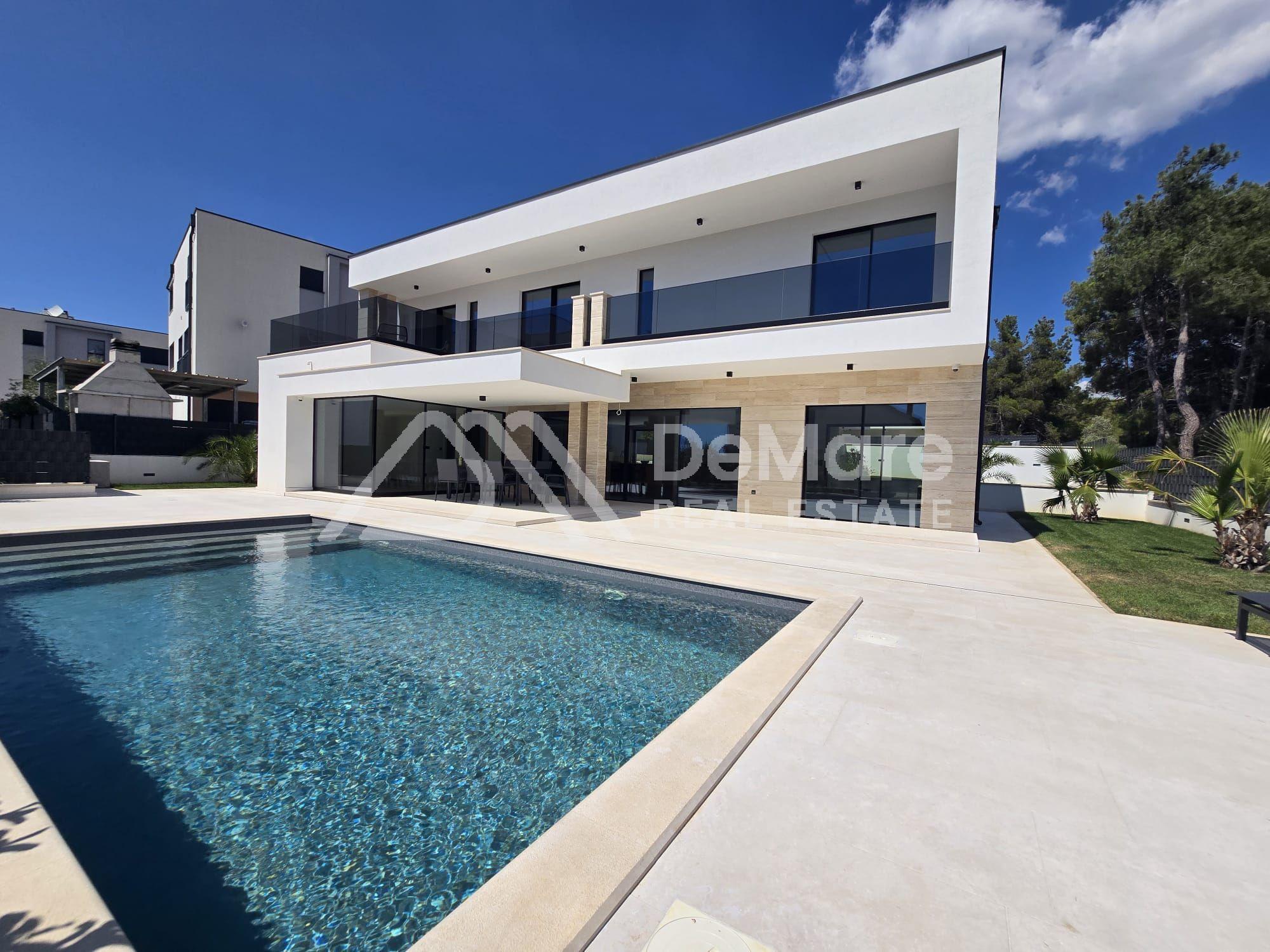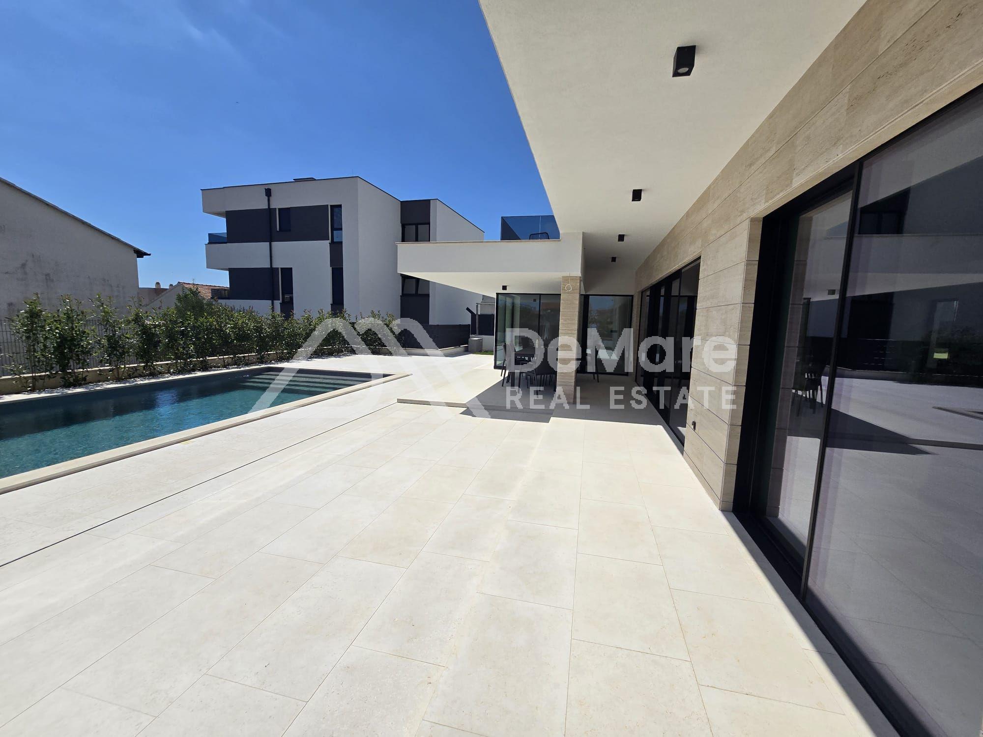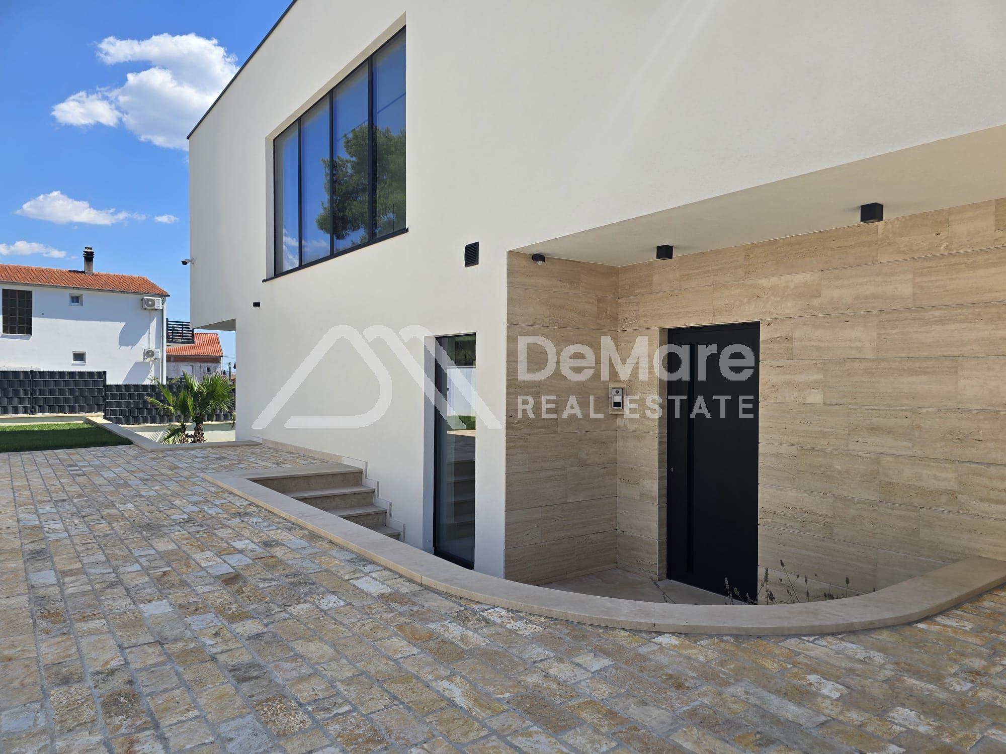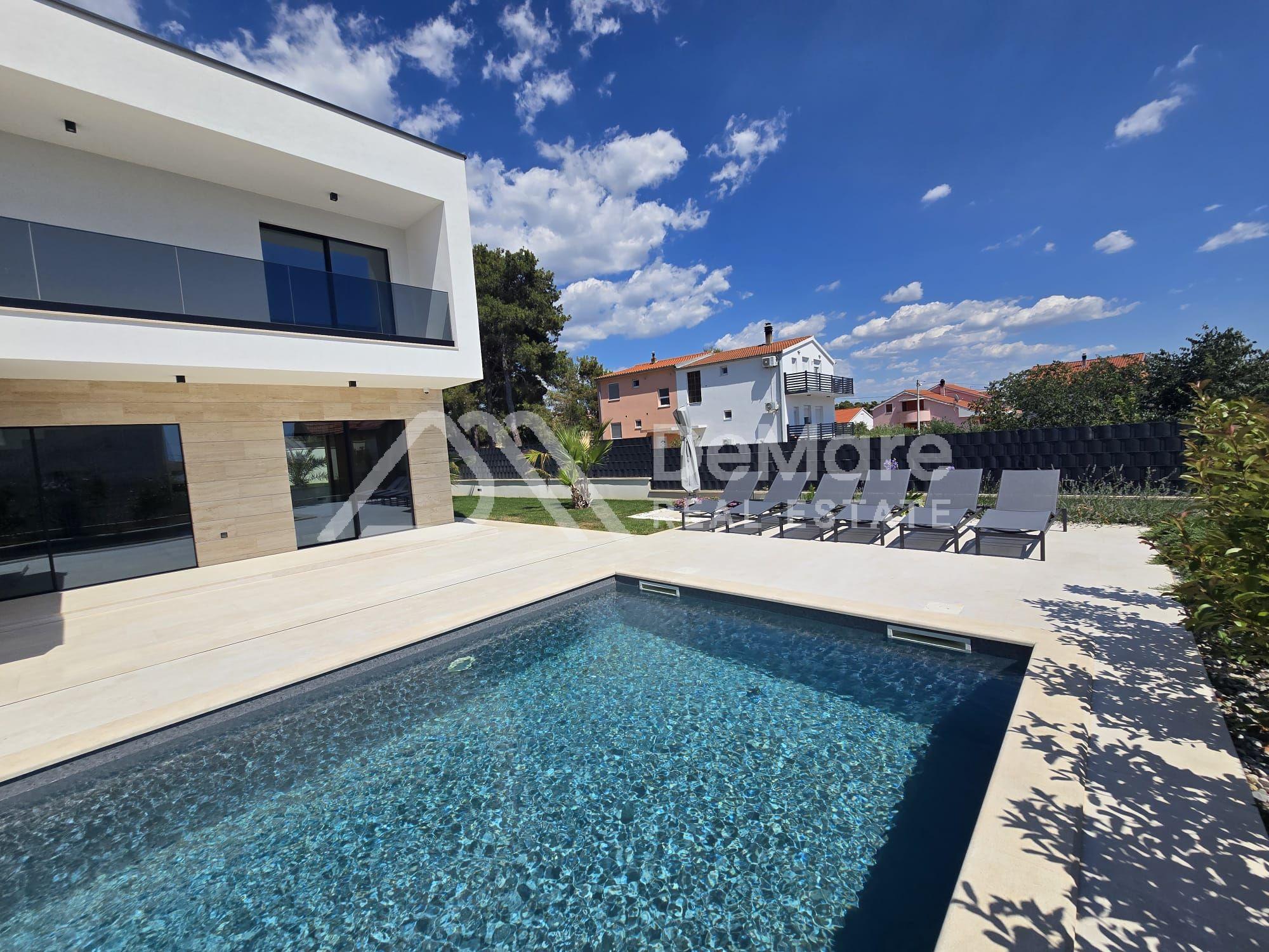 Prodaje se nova, prekrasna, urbana, luksuzna villa sa saunom, teretanom i grijanim bazenom projektirana u modernom stilu, koja je smještena na mirnoj lokaciji u gradu Zadru, na području Petrića.