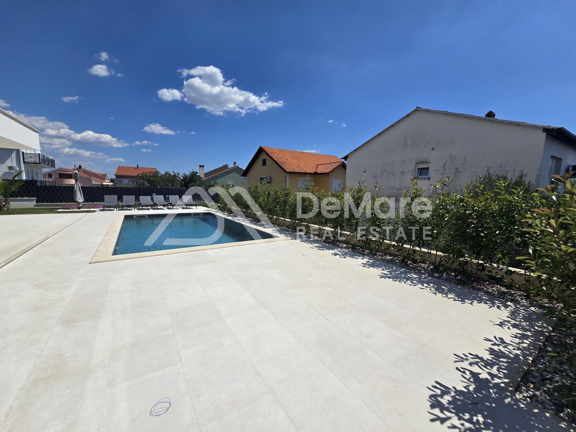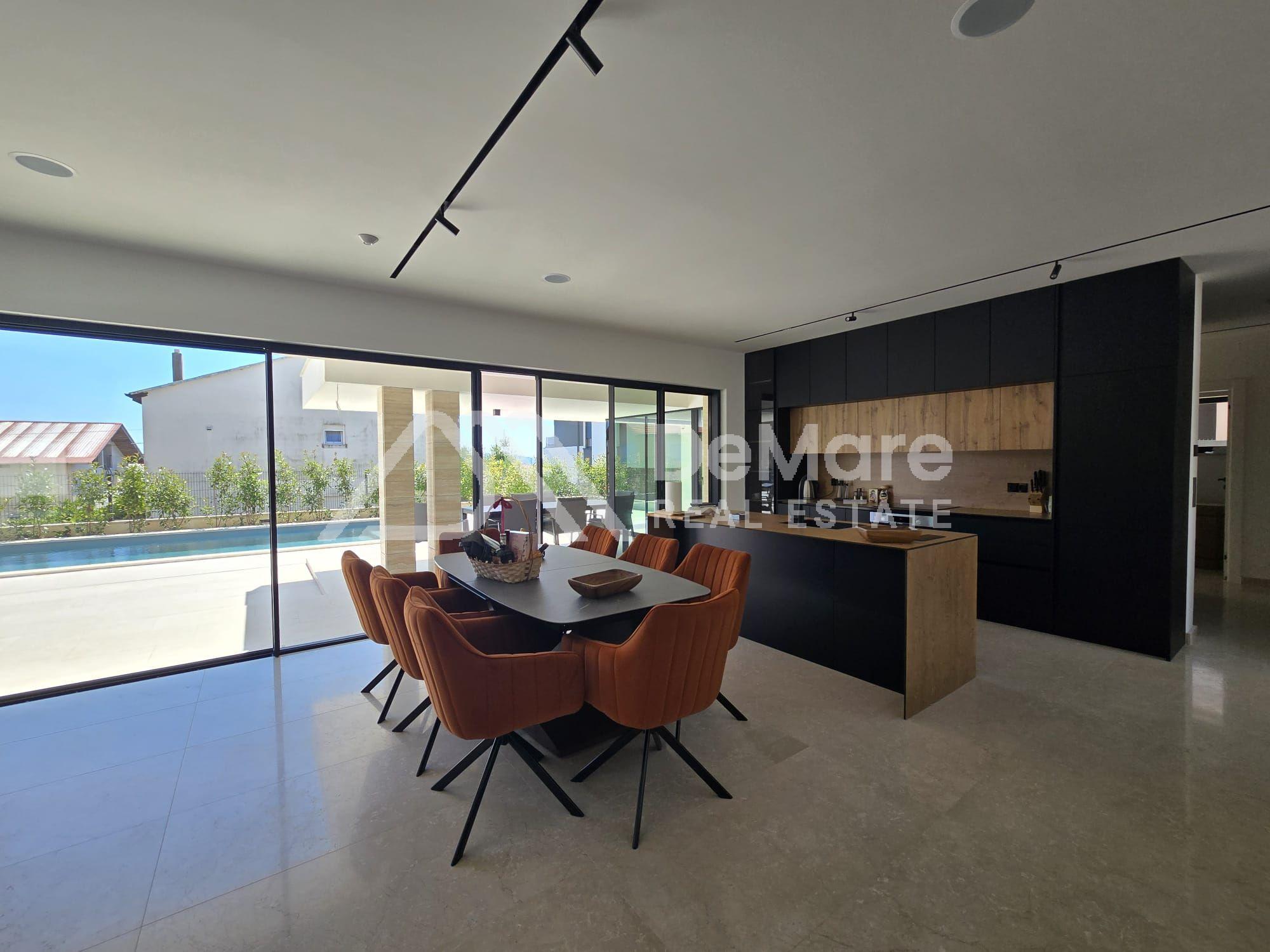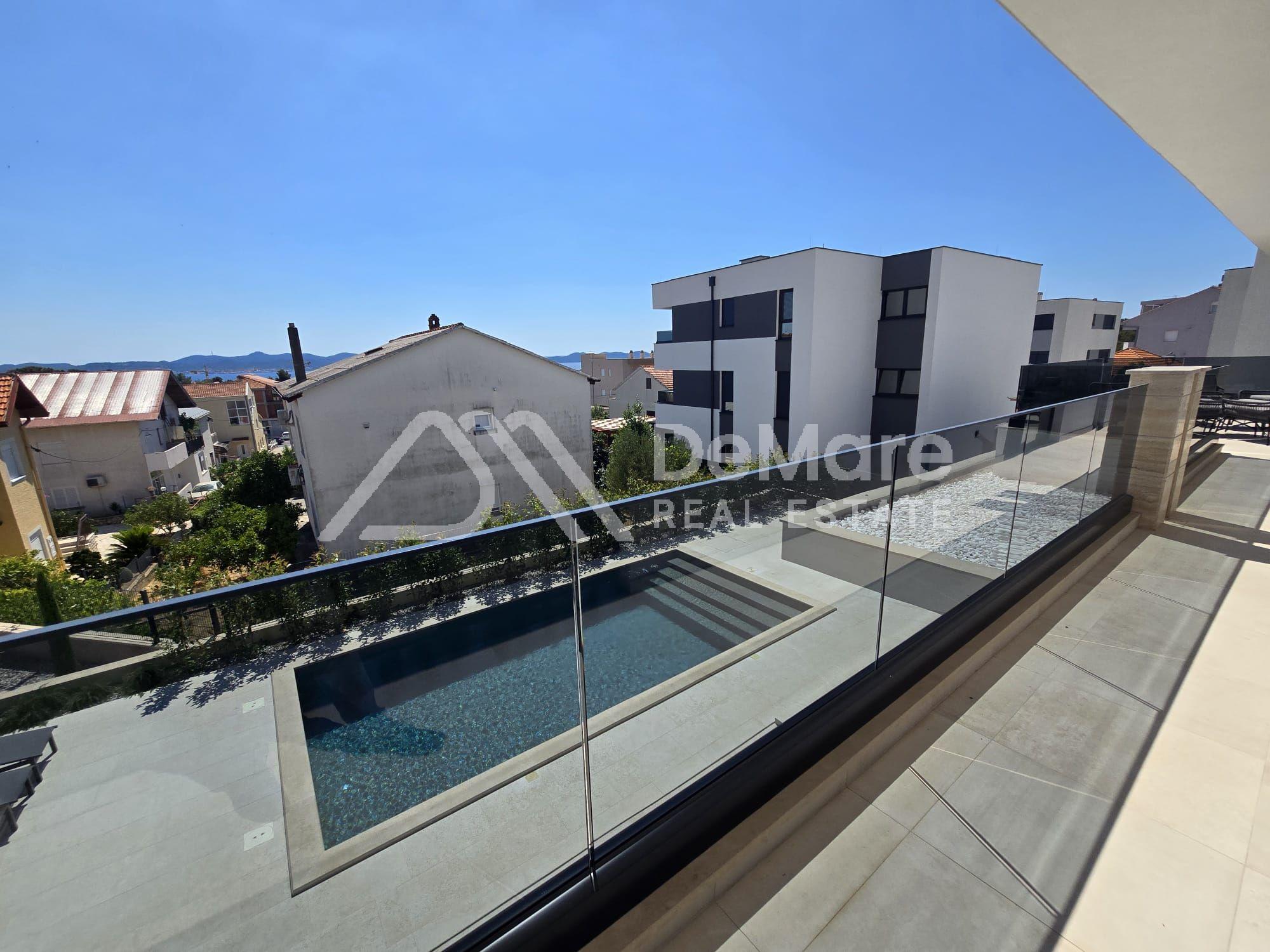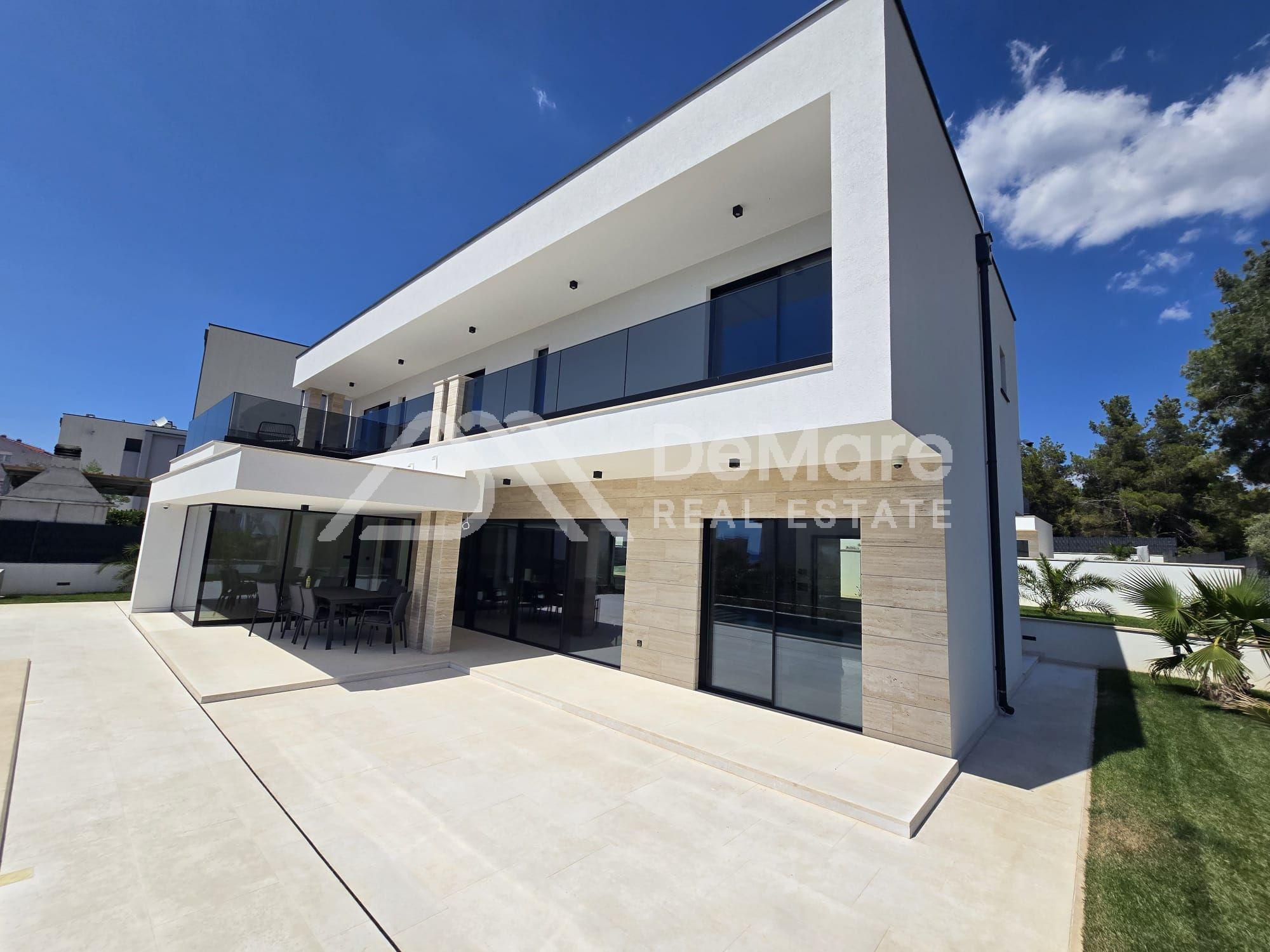 Prodaje se nova, prekrasna, urbana, luksuzna villa sa saunom, teretanom i grijanim bazenom projektirana u modernom stilu, koja je smještena na mirnoj lokaciji u gradu Zadru, na području Petrića.
