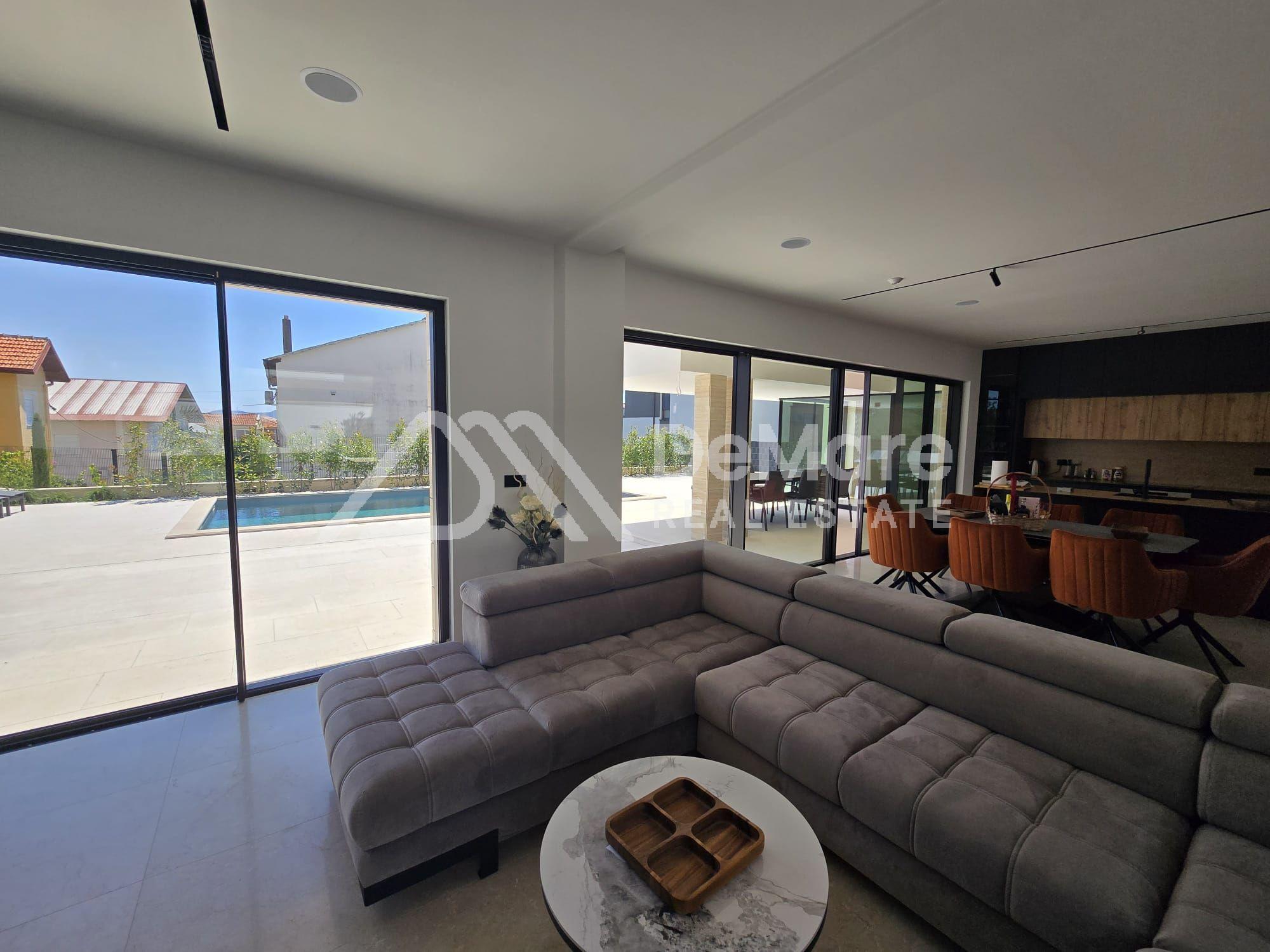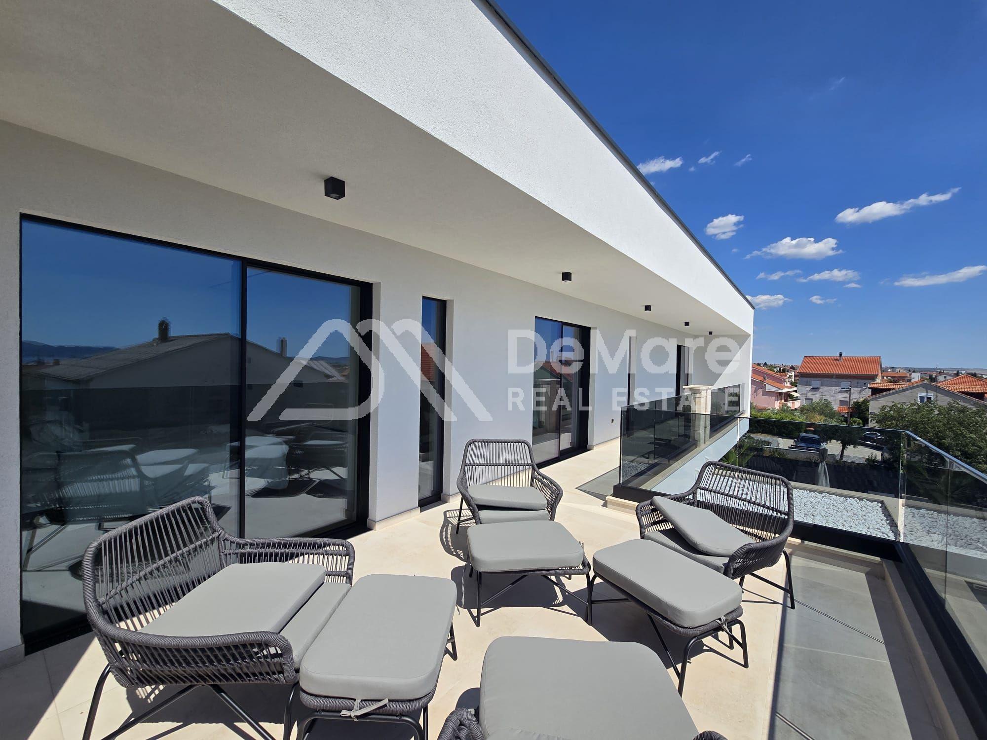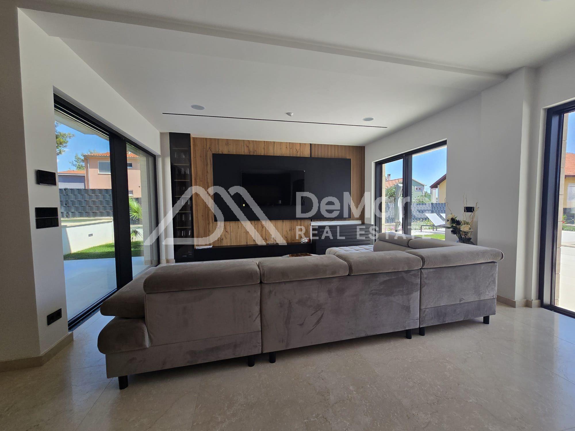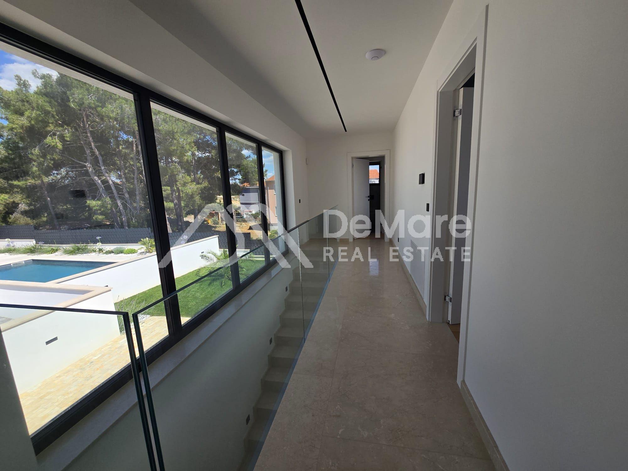 Prodaje se nova, prekrasna, urbana, luksuzna villa sa saunom, teretanom i grijanim bazenom projektirana u modernom stilu, koja je smještena na mirnoj lokaciji u gradu Zadru, na području Petrića.