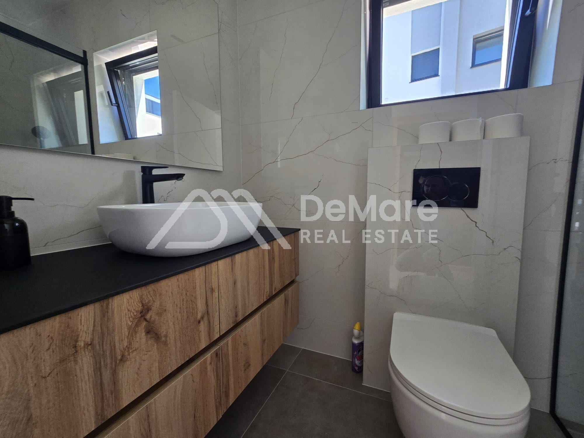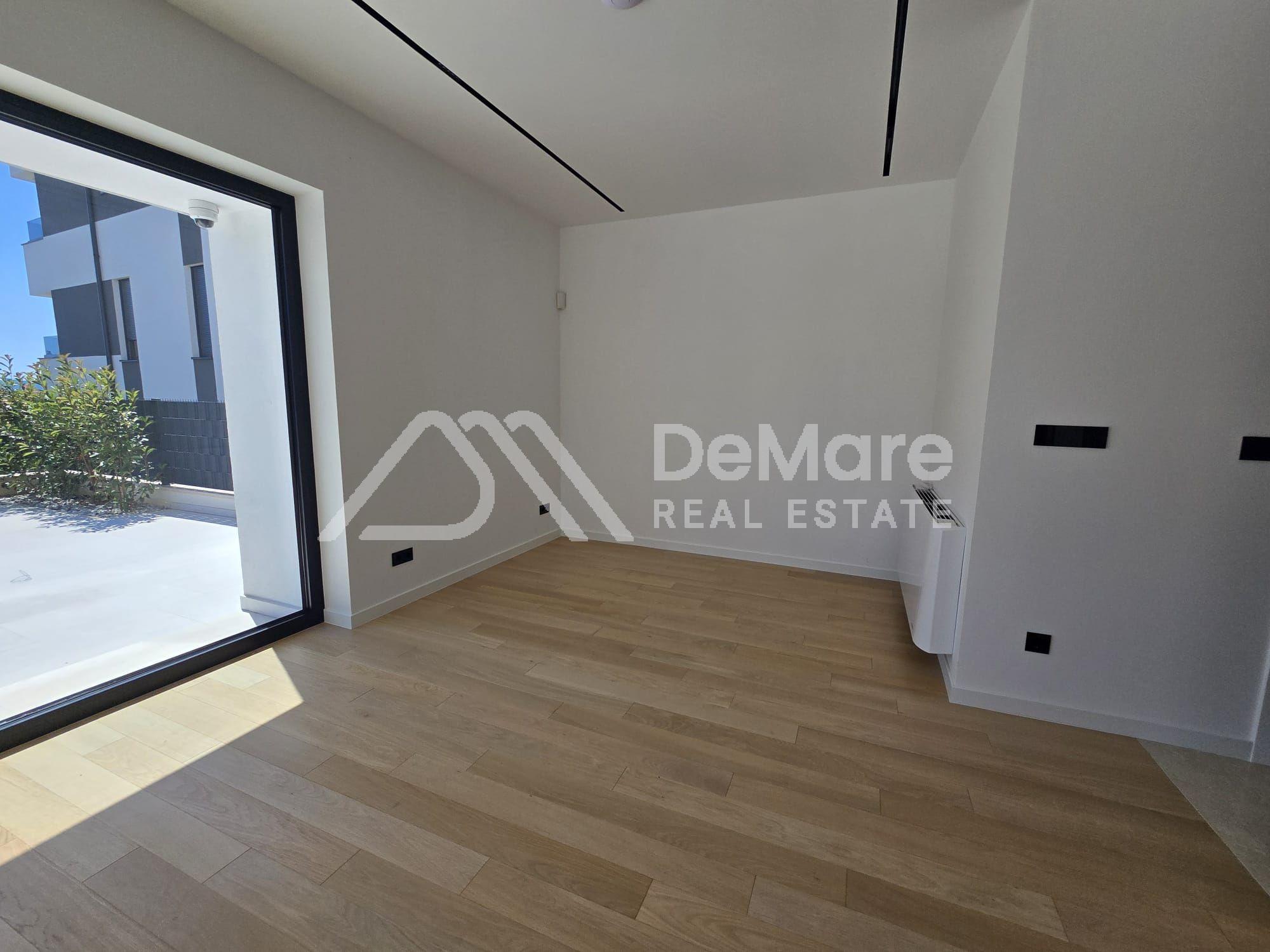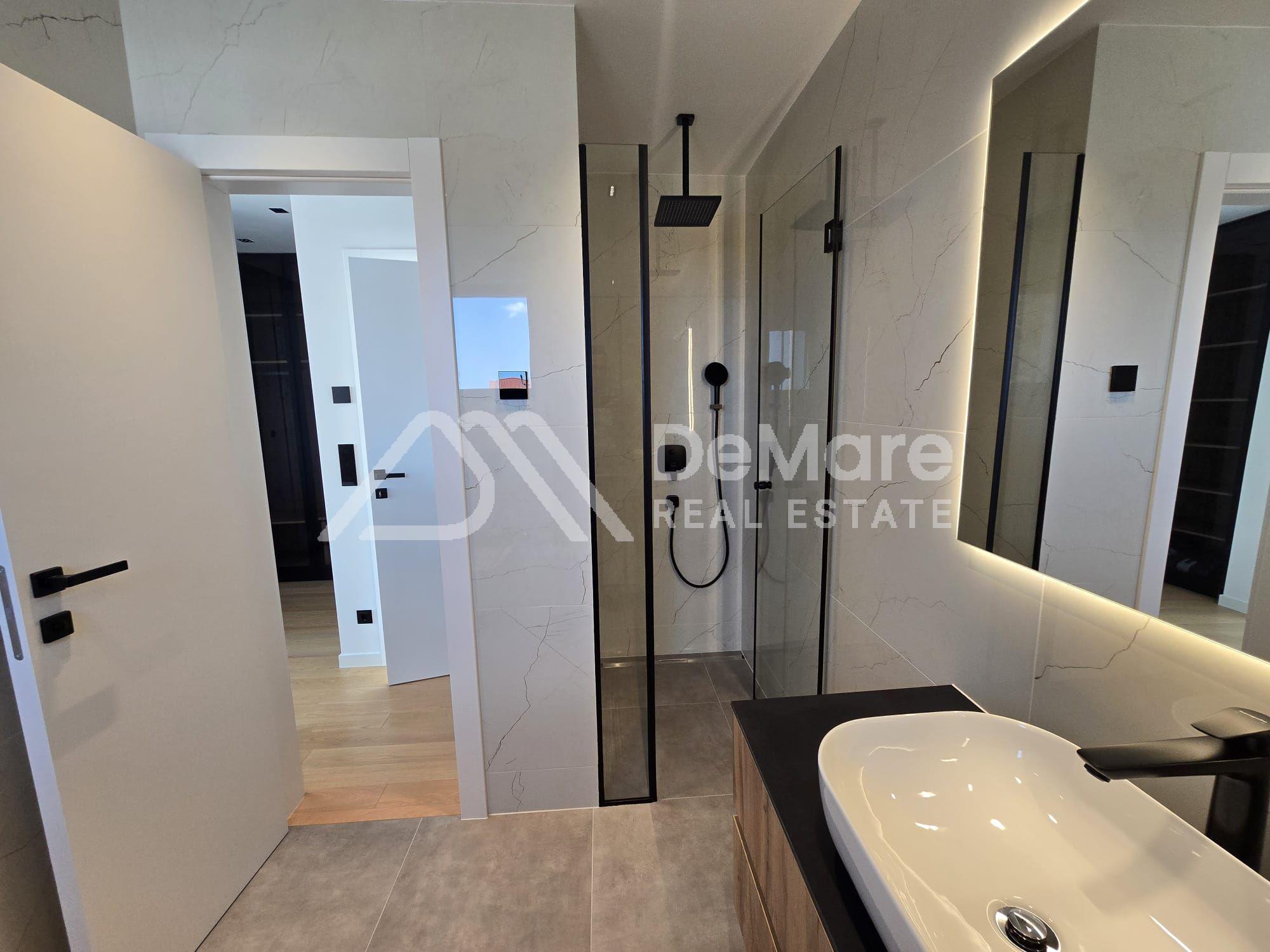 Unutarnje stepenice vode na prvi kat, gdje su smještene tri komforne master spavaće sobe koje imaju vlastite kupaonice i gaderobe, te imaju izlaz na lođu i terasu s koje se pruža pogled na more.