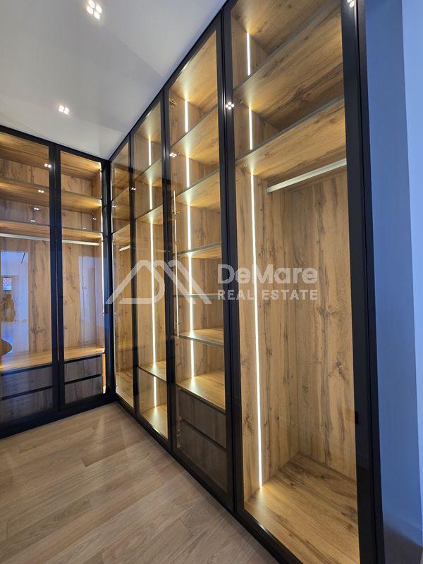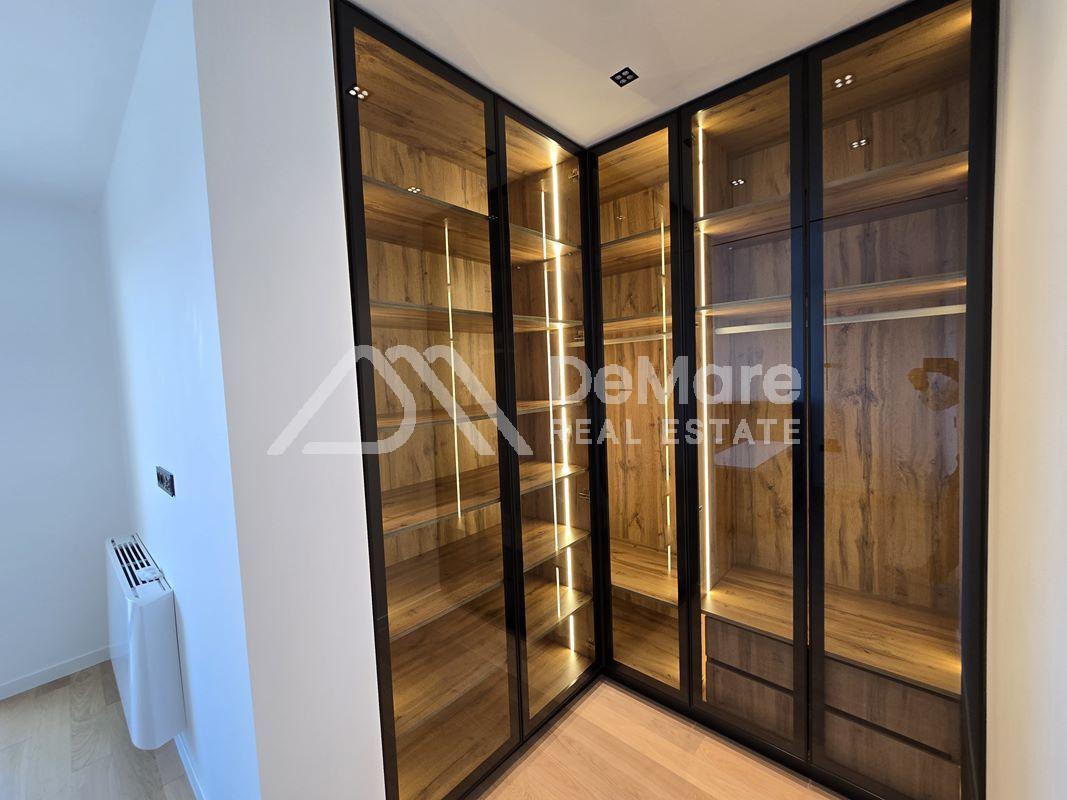 Ugrađena je dizajnerska stropna rasvjeta i ozvučenje, video-nadzor cijelog posjeda, prvoklasne podne obloge (kamen Botticino i visokokvalitetni parketi u sobama), sobna vrata sa sakrivenim šarkama i magnetnim bravama (puna ispuna), sanitarije visoke kvalitete (Villeroy & Boch, Hansgrohe). Kuhinjski elementi i garderobni ormari rađeni su po mjeri, sa ugradbenom rasvjetom.